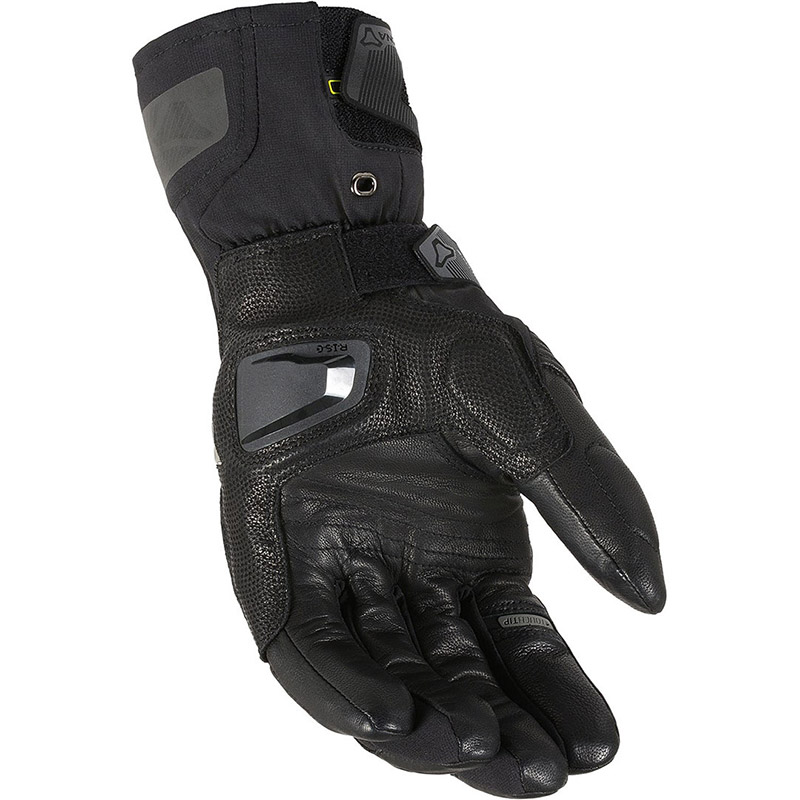 Guanti impermeabili con protezioni. Comfort: Pulizia dello schermo. Impermeabile. Funzionalità: Cinghie regolabili. Utilizzare il touchscreen. Materiali: Pelle. Tessuto. Sicurezza: Protezione nocche. Protezione palmo. Riflessione laminata. Stile: Touring Adventure. Adatto per: Uomini. Universale. Donne. Tecnologia: 30 Degree Buckle. Ergothumb. RISC protection. RISC Nocca. RISC Palmo. Side Eye. Touch Tip. Raintex. Tipo di clima: Tutti i tipi di clima.