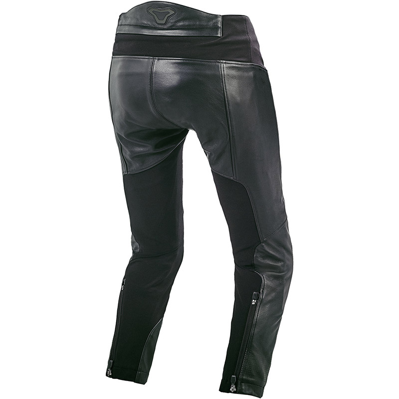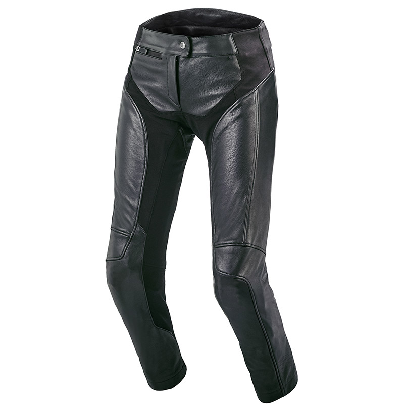 Pantaloni in pelle con protezioni, versione femminile. Colori: Nero. Comfort: Stretch. Funzionalità: Cerniera sulla caviglia. Collegamento con giacca. Materiali: Pelle. Sicurezza: Cerniera corta di collegamento. Predisposto per protezione anca. Protezione ginocchia. Stile: Touring Adventure. Adatto per: Donne. Tecnologia: Waist Lock Lite. Tipo di clima: Caldo. Informazioni tecniche. Omologazione: Protezione ginocchio CE livello 1. Materiali: Pelle di vacchetta.