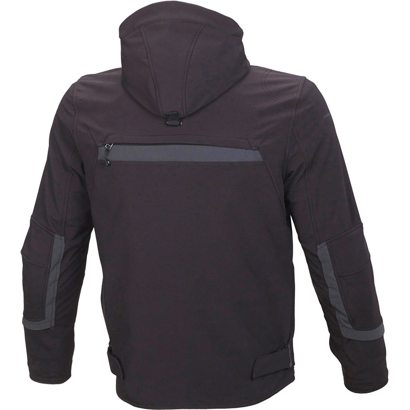 Colori: Nero, Grigio, Grigio scuro. Comfort: Accessorio per cintura. Fissaggio per cappuccio. Cerniere di ventilazione. Impermeabile. Funzionalità: Cinghie regolabili. Collegamento con pantaloni. Materiali: Tessuto. Sicurezza: Predisposto per protezione schiena. Protezione gomito. Protezione spalle. Riflessione laminata. Stile: Touring Adventure. Adatto per: Uomini. Tecnologia: Belt Loop, Coathanger, Hoody holder, Easy Cuff Light, Night Eye, Side Eye, Zip-grip. Tipo di clima: Tutti i tipi di clima, Freddo, Caldo, Piovoso. Informazioni tecniche. Omologazione: CE. Protezione gomito CE livello 1. Protezione spalle CE livello 1. Materiali: Softshell.