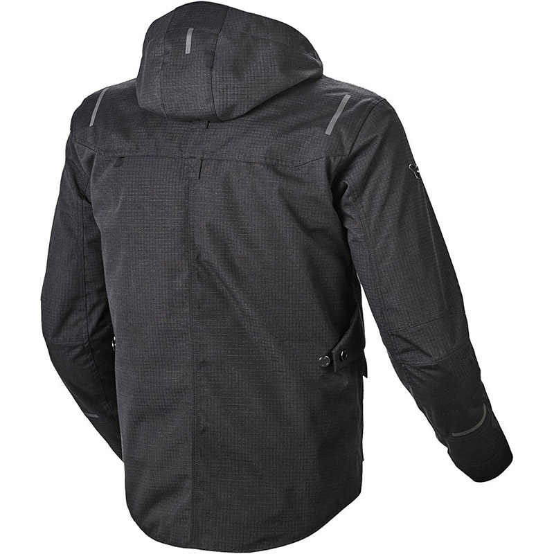 Colori: Nero. Comfort: Fissaggio per cappuccio. Fodera rimovibile. Stretch. Pannelli di ventilazione. Impermeabile. Accessorio per cintura. Funzionalità: Cinghie regolabili. Cappuccio removibile. Materiali: Tessuto. Sicurezza: Predisposto per protezione schiena. Protezione gomito. Protezione spalle. Riflessione laminata. Stile: Touring Adventure, Custom Retro. Adatto per: Uomini. Tecnologia: Airscoop. Belt Loop. Electric Power Guide. Hoody holder. Easy Cuff Light. Raintex, Raintex+. Tipo di clima: Tutti i tipi di clima. Informazioni tecniche. Omologazione: CE. Protezione gomito CE livello 1. Protezione spalle CE livello 1. Materiali: Ripstop.